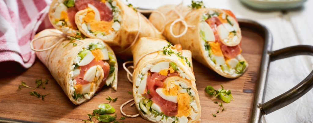 Dieser spezielle Wrap mit Lachs, Kresse und Ei ist besonders gesund und dank der Zutaten äußerst kalorienarm, macht deshalb aber nicht weniger satt. Mit fertigen Wraps oder Tortillas aus dem Supermarkt ist dieses Rezept im Handumdrehen fertig und gelingt so gut wie immer.